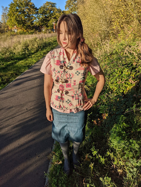 Itch to Stitch Shau Vest - designed for stable woven fabric. I made one with homemade bias binding and one with piping, both lined of course, although you can make the bias bound raw edge version without a lining.